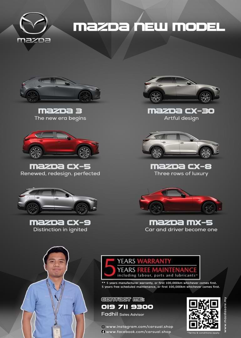 Saya merupakan agen sah berdaftar Mazda Malaysia akan membantu anda mendapatkan kereta idaman anda. Hubungi saya untuk mendapatkan maklumat lanjut mengenai kereta Mazda.